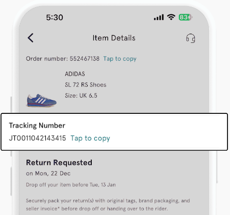After submitting your return request, you will receive a return tracking number and/or QR code. You can find this information by going to Account>My Orders>Select Return Requested Item/s. Alternatively, you will also receive a confirmation email for your return request with your Return Tracking information.