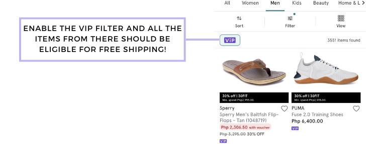 How does the ZALORA VIP free shipping perk work?